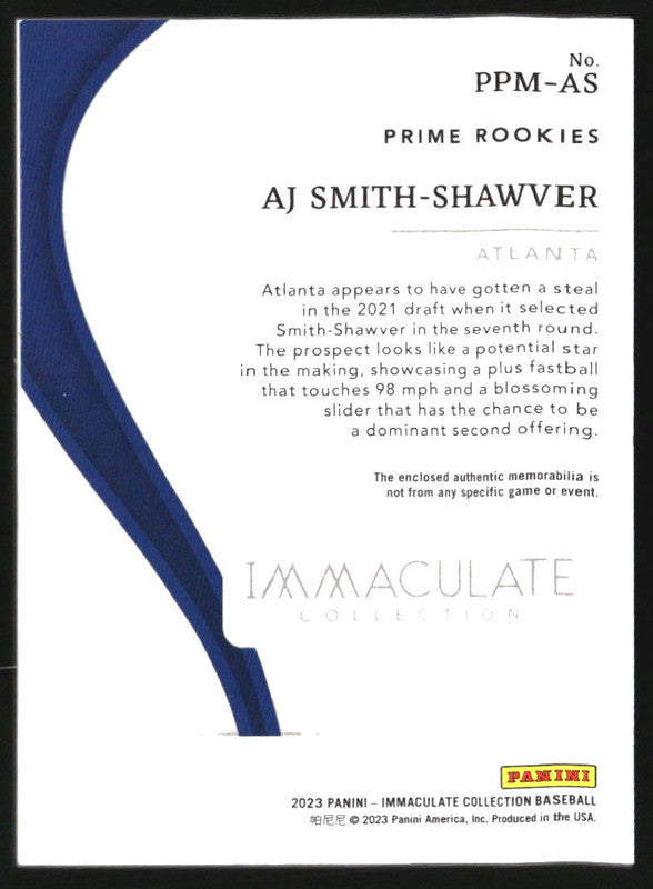 2023 Immaculate Collection Prime Rookies Materials Blue AJ Smith-Shawver /15