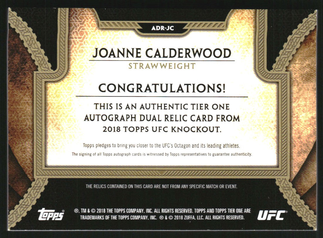 2018 Topps UFC Knockout Tier One Auto Dual Relics Purple Joanne Calderwoo /25
