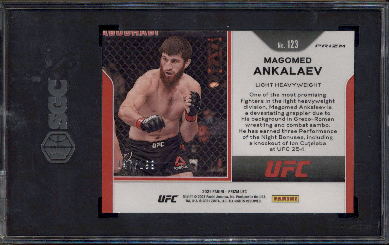 2021 Panini Prizm UFC Blue Prizm #123 Magomed Ankalaev /199 SGC 10