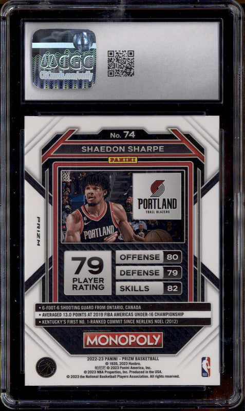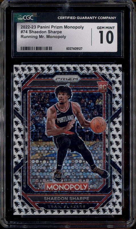 2022-23 Panini Prizm Monopoly Running Mr. Monopoly #74 Shaedon Sharpe RC CGC 10
