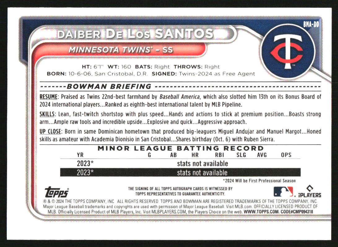 2024 Bowman Chrome Chrome Mega Box Yellow Mojo Daiber De Los Santos Auto /75