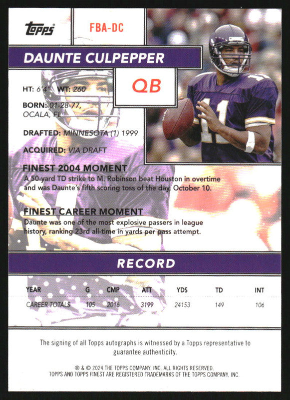 2024 Topps Finest Flashback Blue Geometric #FBA-DC Daunte Culpepper Auto /99