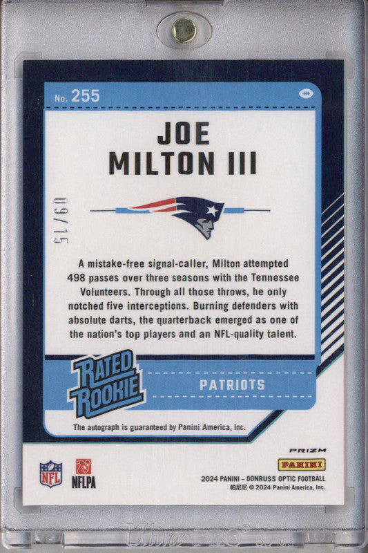 2024 Donruss Optic Rated Rookies RPS Autographs Ice Joe Milton III RC Auto /15