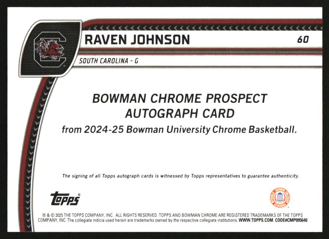 2024 Bowman University Chrome Black and White Stealth Raven Johnson RC Auto /48