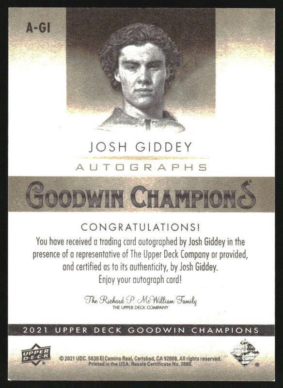 2021 Upper Deck Goodwin Champions Autographs #A-GI Josh Giddey Autograph Auto