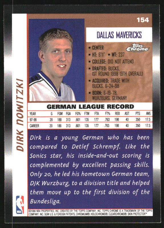 1998-99 Topps Chrome #154 Dirk Nowitzki RC