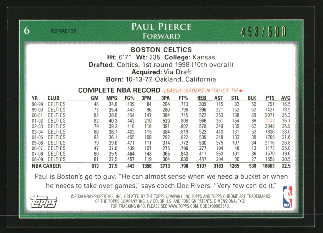 2009-10 Topps Chrome Refractors #6 Paul Pierce /500