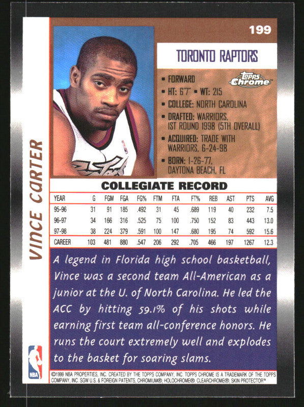 1998-99 Topps Chrome #199 Vince Carter RC