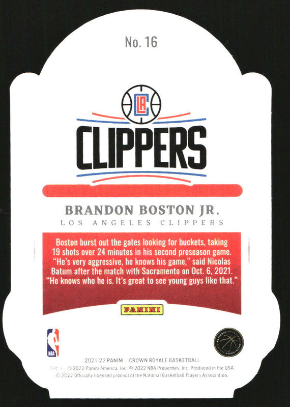 2021-22 Panini Crown Royale Rookie Royalty Gold #16 Brandon Boston Jr. RC /10