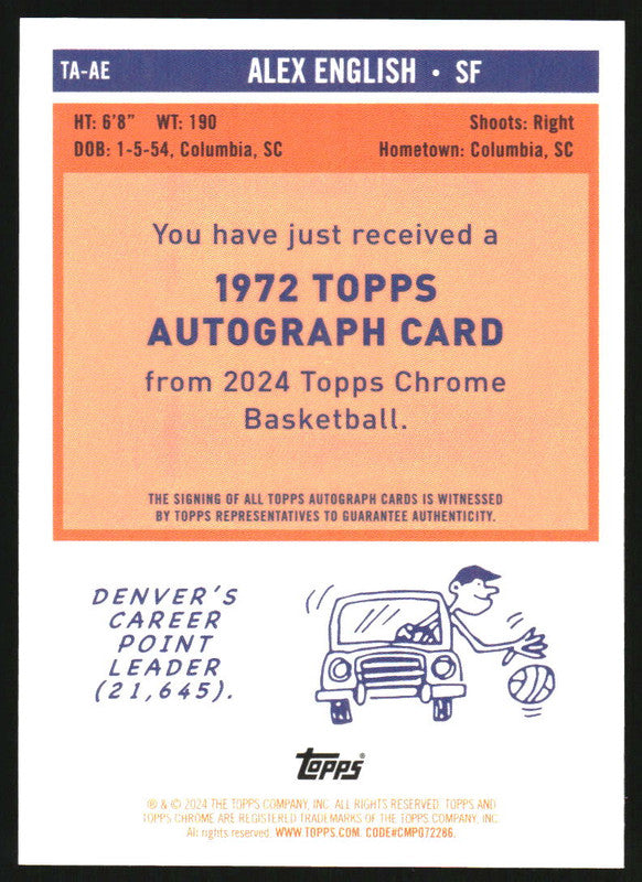 2023-24 Topps Chrome Sapphire '72 Topps Purple Refractors Alex English Auto /10