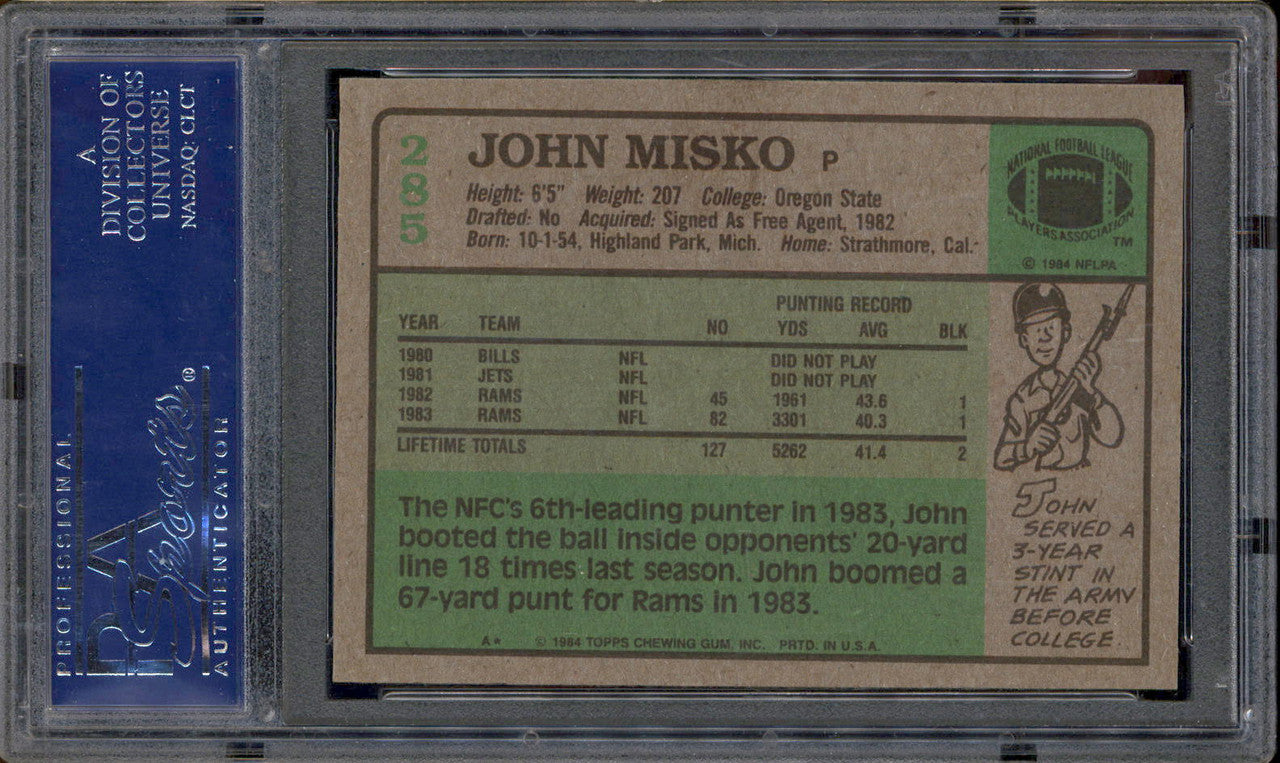 1984 Topps #285 John Misko PSA 9