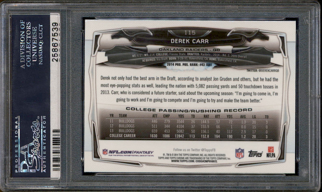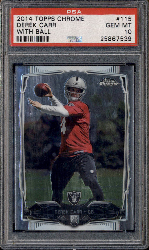 2014 Topps Chrome With Ball #115 Derek Carr RC Rookie PSA 10