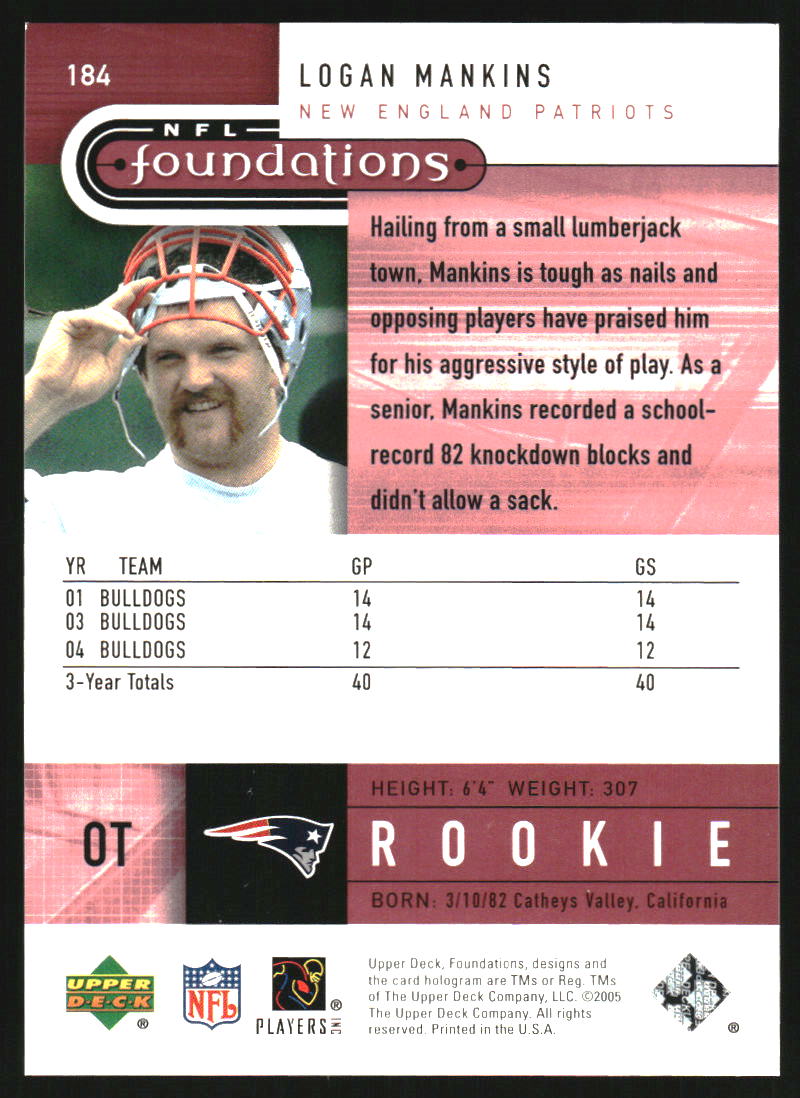 2005 Upper Deck Foundations #184 Logan Mankins RC /399