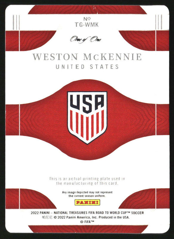 2022 National Treasures World Cup Printing Plates Black Weston McKennie 1/1
