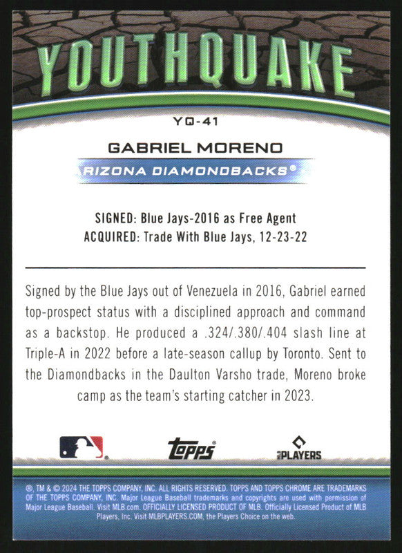 2024 Topps Chrome Youthquake Black Refractors #YQ41 Gabriel Moreno /10