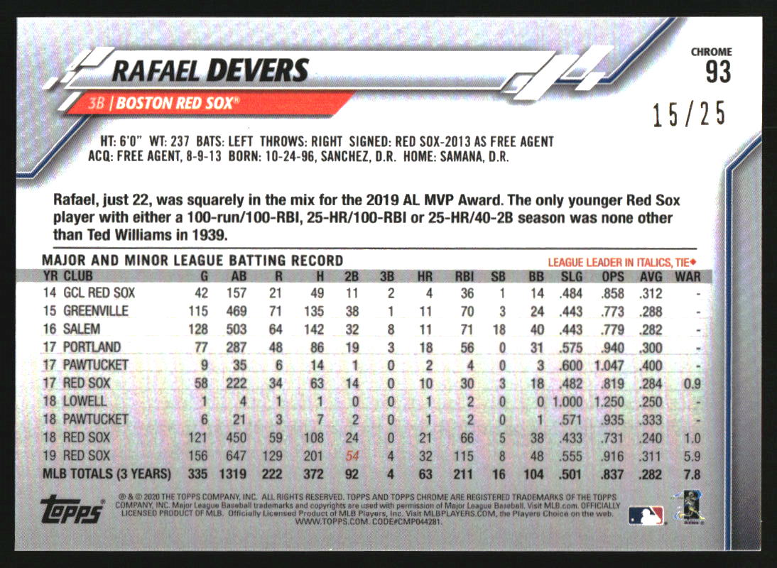 2020 Topps Chrome Ben Baller Edition Orange Refractor #93 Rafael Devers /25