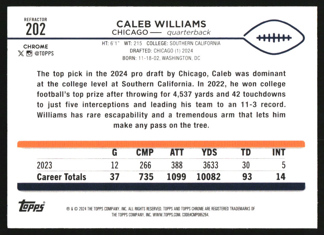 2024 Topps Chrome Refractor #202 Caleb Williams RC Rookie