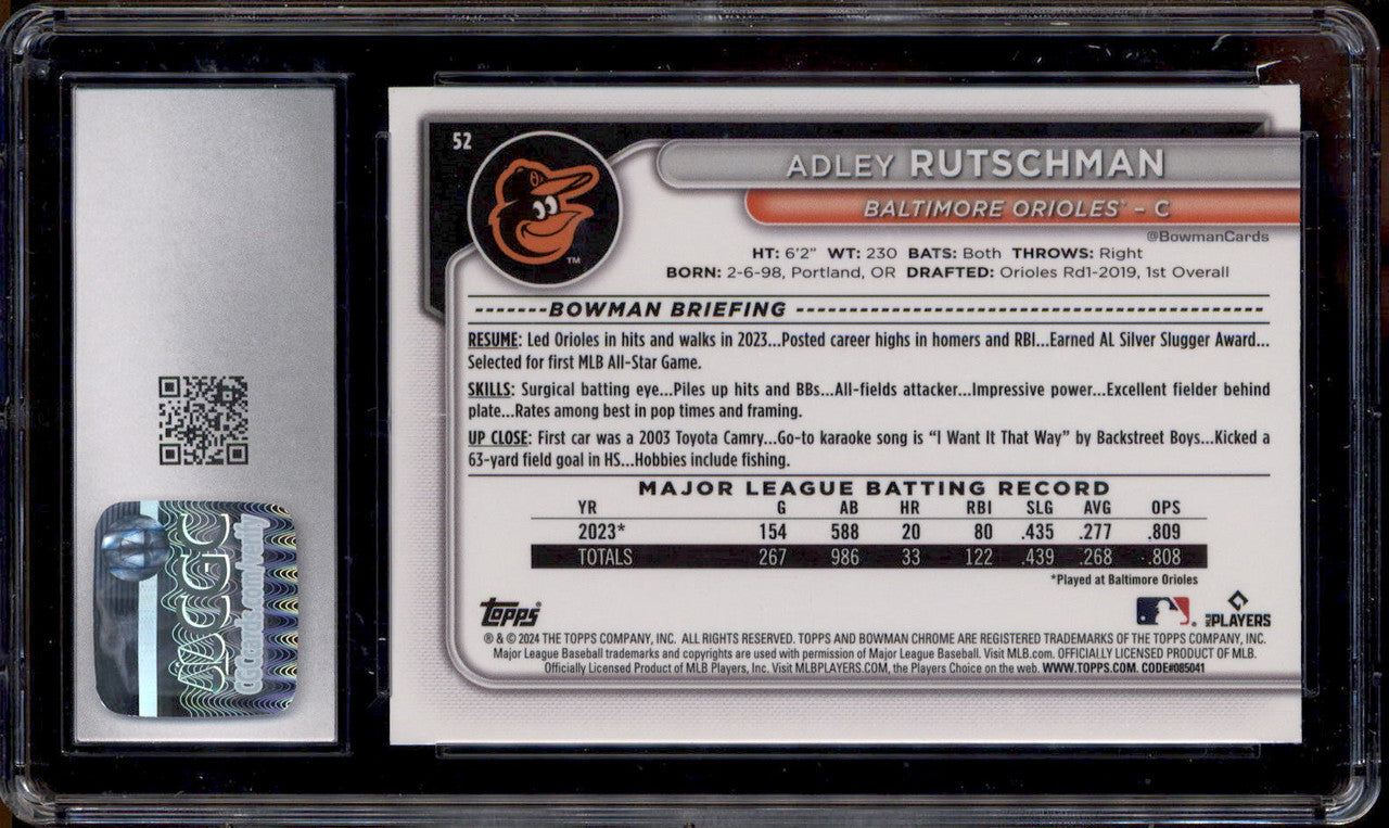2024 Bowman Chrome Orange Refractor #52 Adley Rutschman /25 CGC 10