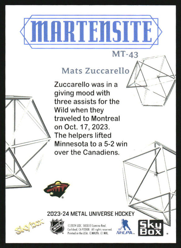 2023-24 Skybox Metal Universe Martensite #MT-43 Mats Zuccarello