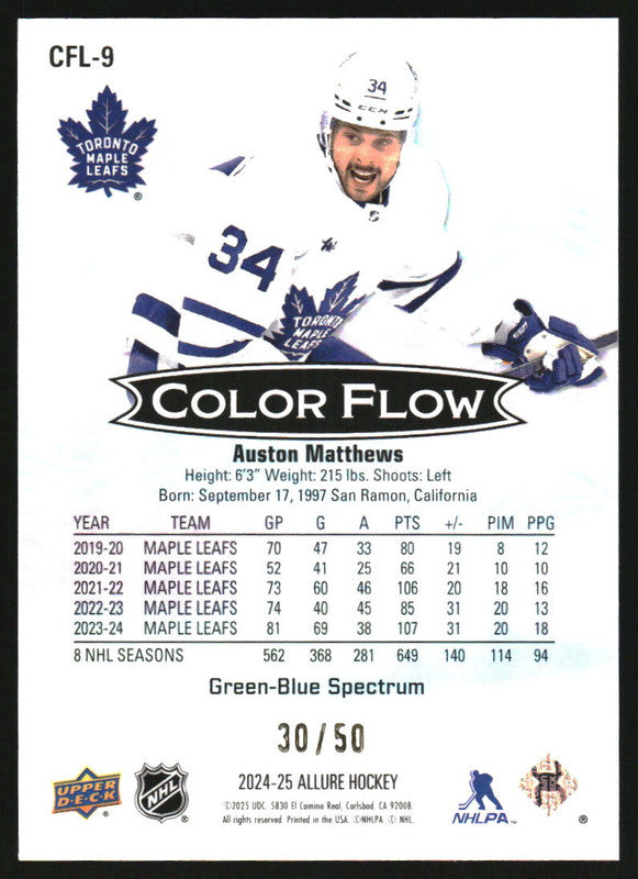 2024 Upper Deck Allure Color Flow Spectrum Green-Blue #CFL-9 Auston Matthews /50