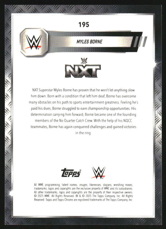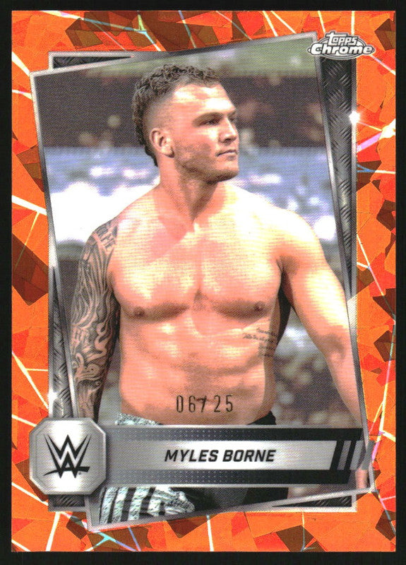 2025 Topps Chrome Sapphire WWE Chrome Orange Refractor #195 Myles Borne /25