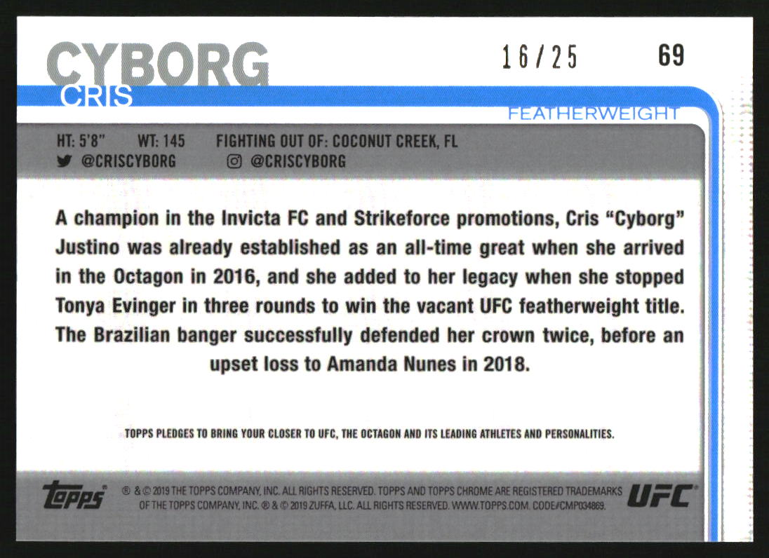 2019 Topps Chrome UFC Orange Refractors #69 Cris Cyborg /25