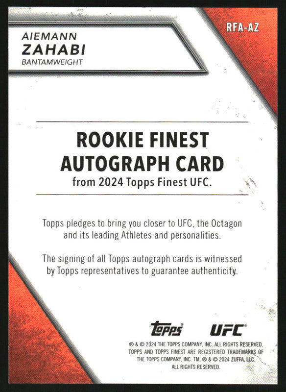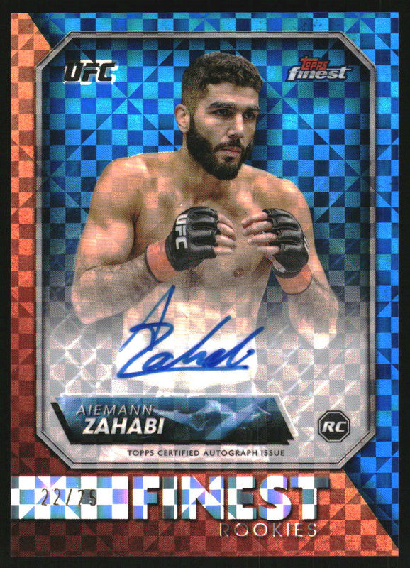 2024 Finest UFC Rookie Autograph Blue Checkerboard Aiemann Zahabi RC Auto /75