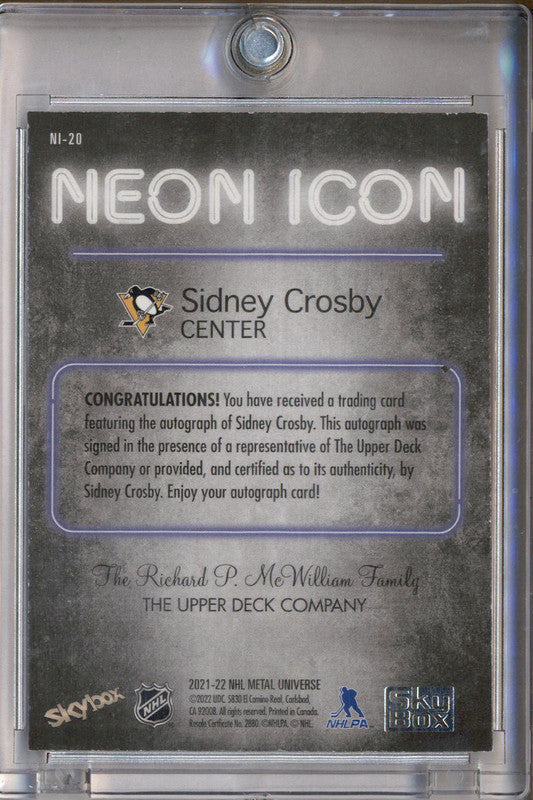 2021-22 Skybox Metal Universe Neon Icon Autographs Sidney Crosby Autograph Auto