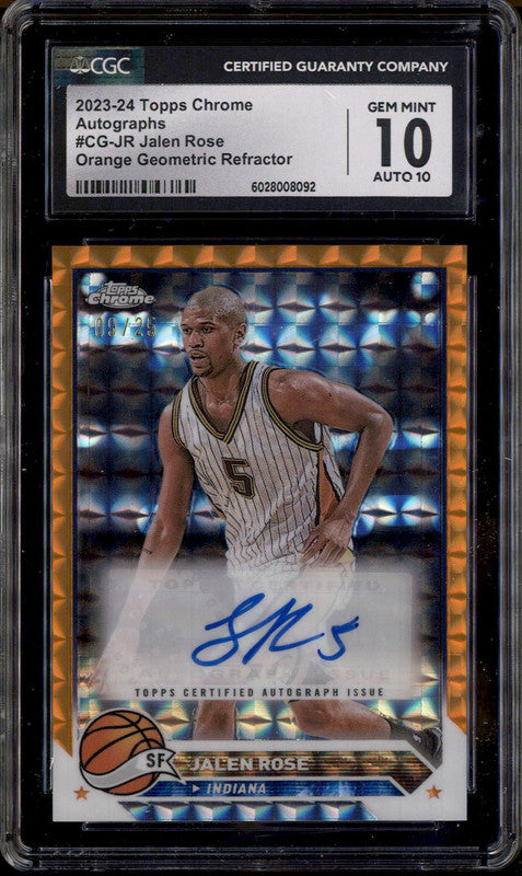 2023 Topps Chrome Auto Orange Geometric Refractor #CG-JR Jalen Rose /25 CGC 10