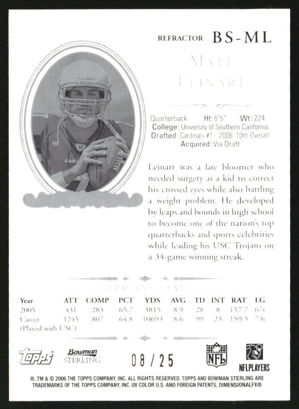 2006 Bowman Sterling Black Refractors #BS-ML Matt Leinart RC /25