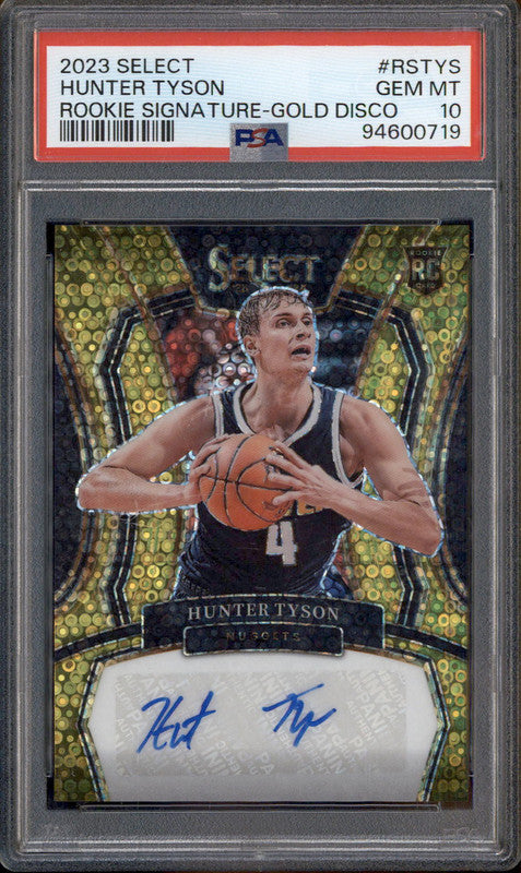 2023 Select Rookie Signatures Gold Disco #RSTYS Hunter Tyson RC Auto /10 PSA 10