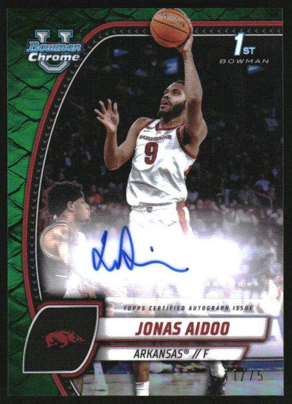 2024 Bowman University Chrome Reptilian Green Refractor Jonas Aidoo RC Auto /75