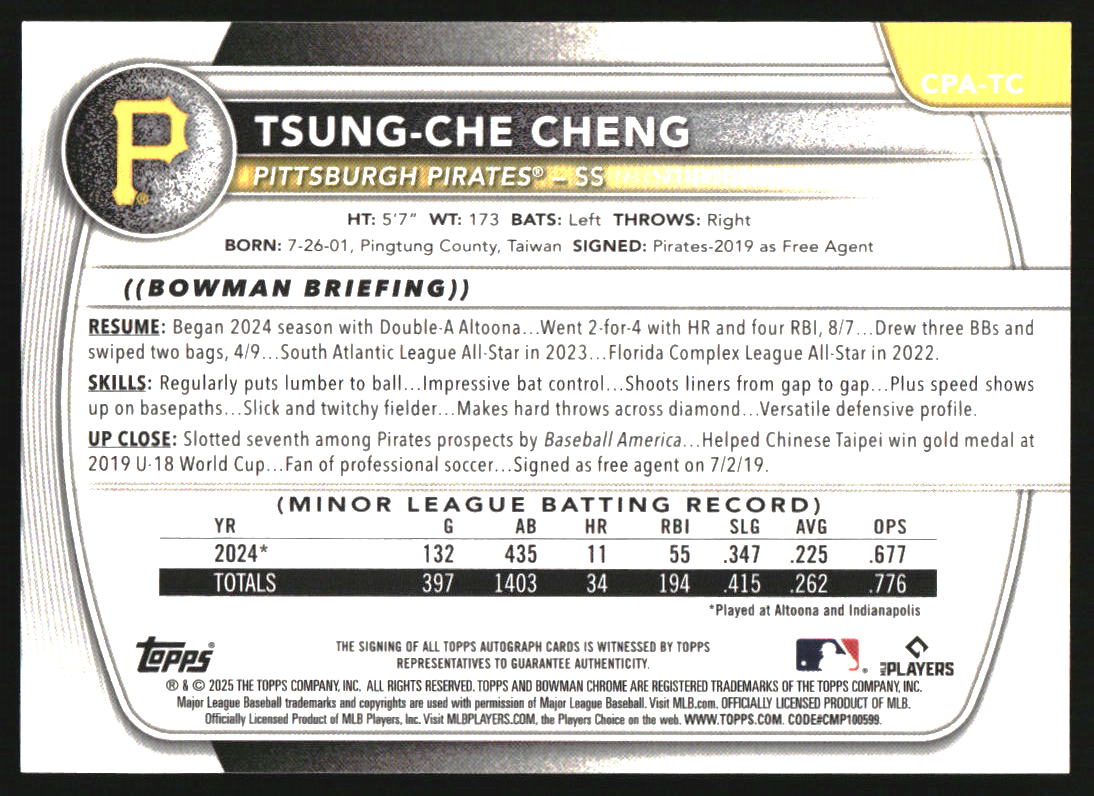 2025 Bowman Chrome Autographs #CPA-TC Tsung-Che Cheng RC Auto