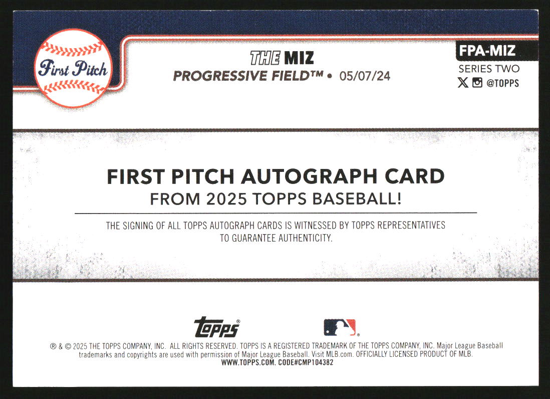 2025 Topps 2024 First Pitch Autographs Gold #FPA-MIZ The Miz Auto /50
