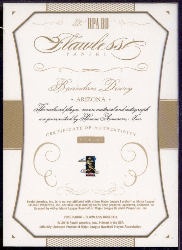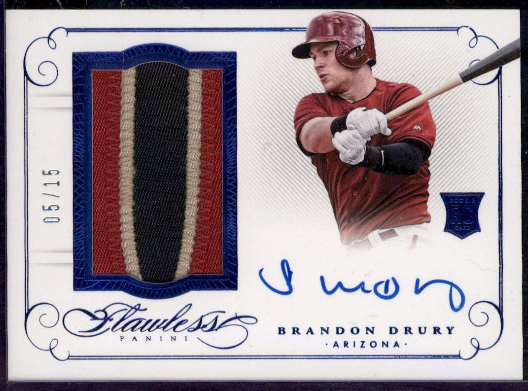 2016 Panini Flawless Rookie Patches Sapphire Brandon Drury RC Auto /15