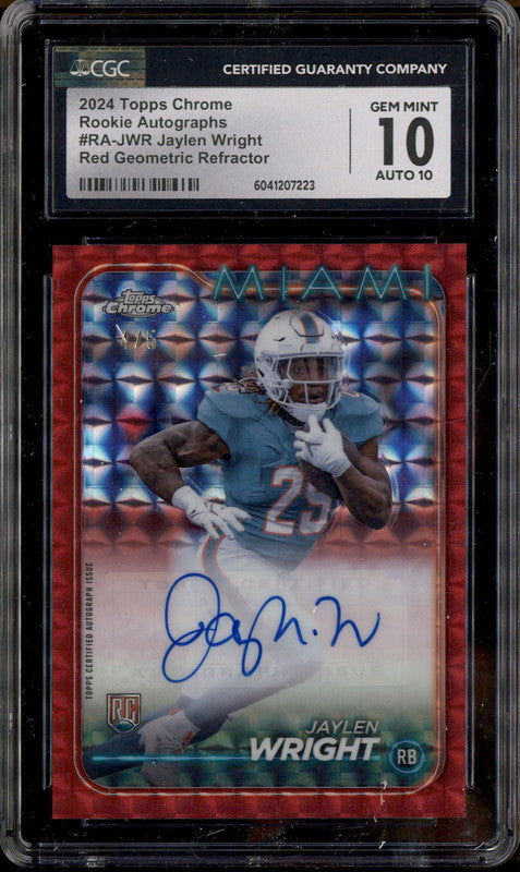 2024 Topps Chrome Red Geometric Refractor #RAJWR Jaylen Wright RC Auto /5 CGC 10