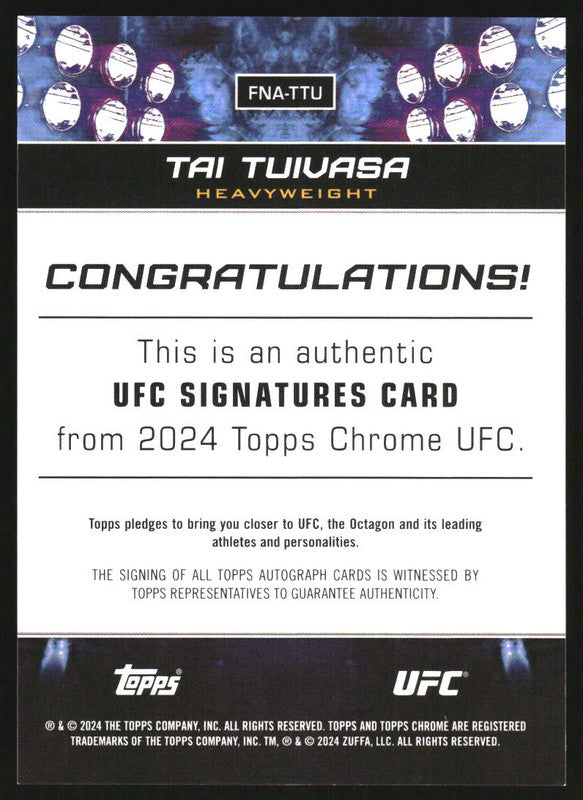 2024 Topps Chrome UFC UFC Signatures Red Refractor #FNA-TTU Tai Tuivasa Auto /5