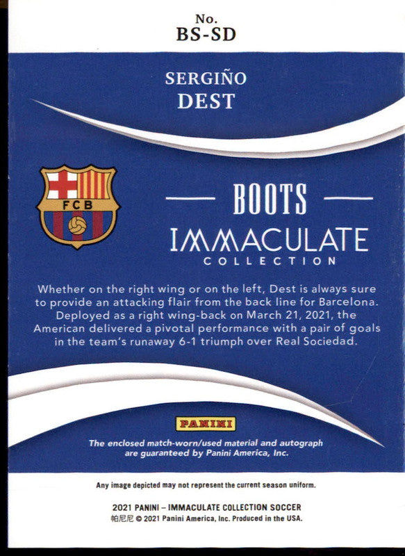 2021 Immaculate Collection Boot Signatures #BS-SD Sergino Dest Auto /24