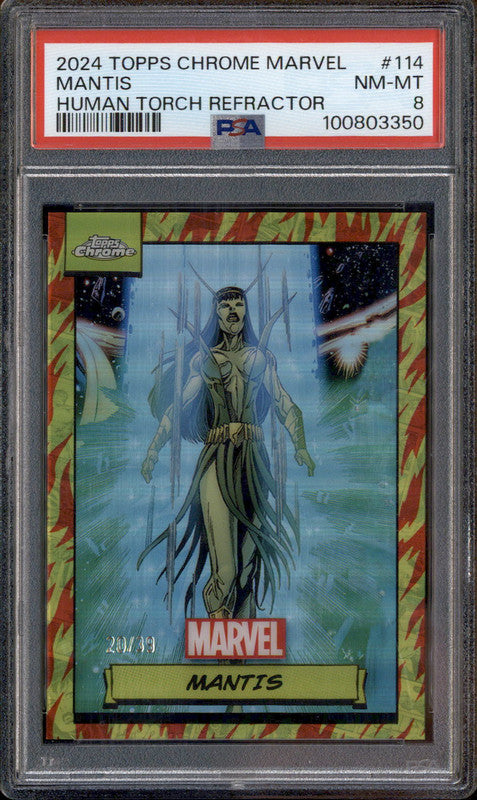 2024 Topps Chrome Marvel Human Torch Refractor #114 Mantis /39 PSA 8