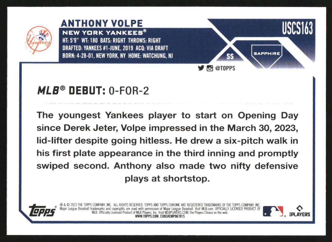 2023 Topps Chrome Update Sapphire Chrome #USCS163 Anthony Volpe RC