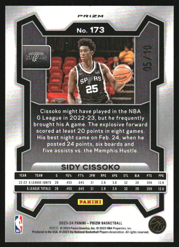 2023-24 Panini Prizm Prizms Gold Shimmer FOTL #173 Sidy Cissoko RC /10