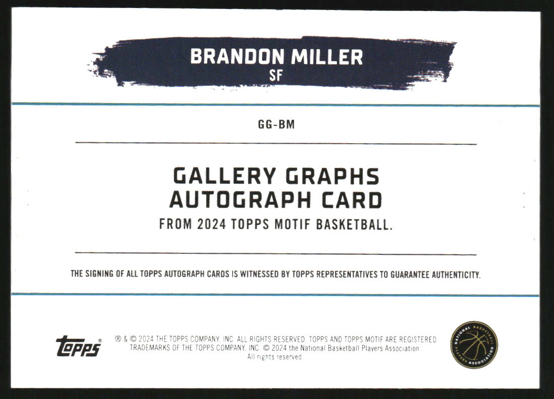 2023-24 Topps Motif Gallery Graphs #GG-BM Brandon Miller RC Auto /99