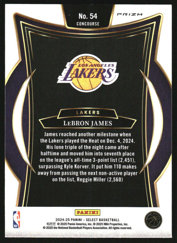 2024-25 Panini Select Concourse Tri-Color Prizm #54 LeBron James