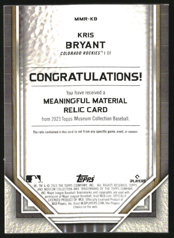 2023 Museum Collection Meaningful Materials Relics Amethyst #KB Kris Bryant /15