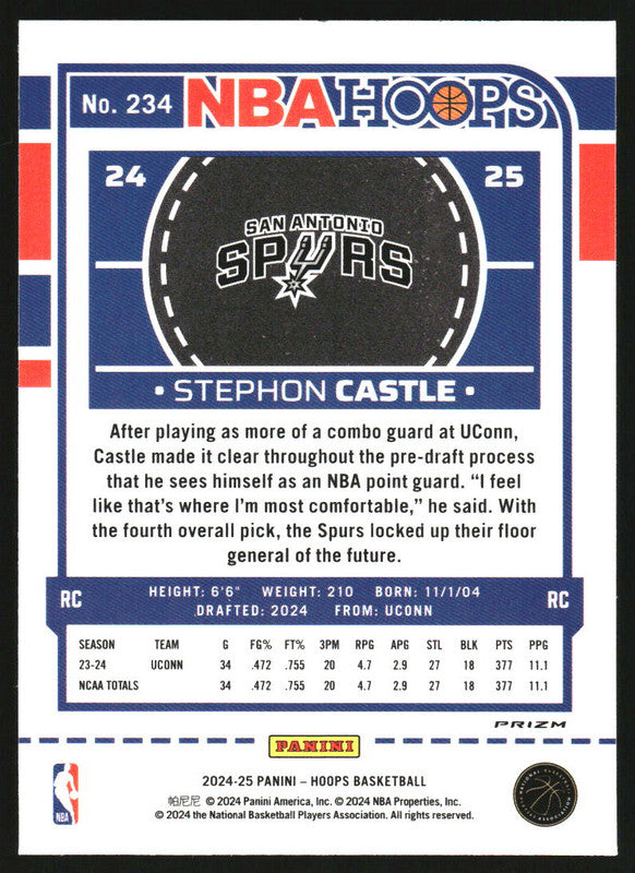 2024-25 Panini Hoops Silver Prizm Premium #234 Stephon Castle RC