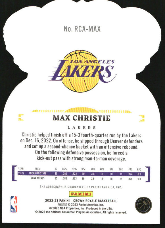 2022-23 Panini Crown Royale Rookie Crown Red Max Christie Autograph RC Auto /35