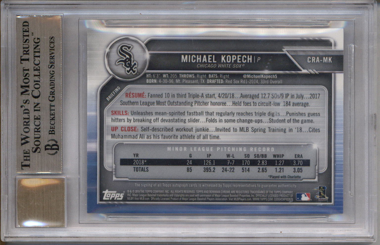 2019 Bowman Chrome Rookie Auto Gold Refractors Michael Kopech RC /50 BGS 9.5