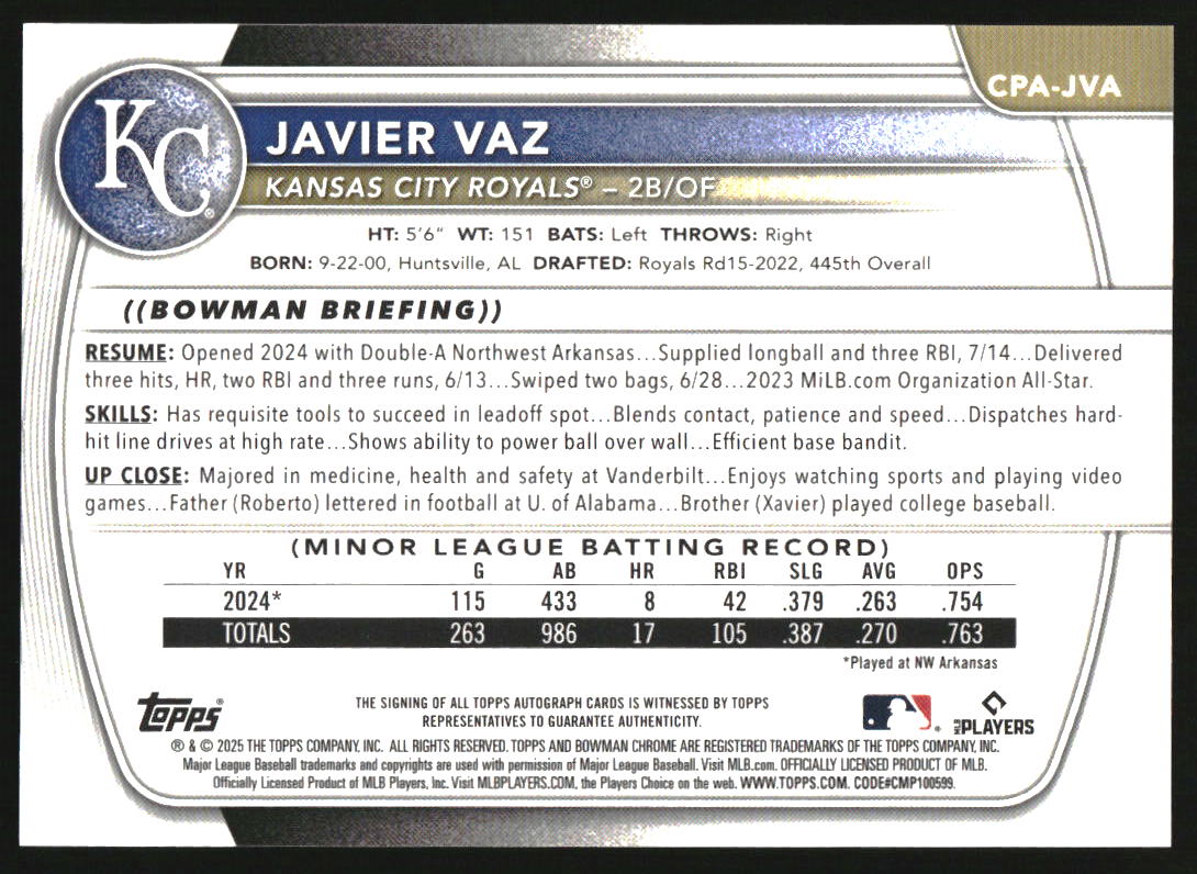 2025 Bowman Chrome Reptilian Orange Refractor #CPA-JVA Javier Vaz RC Auto /25