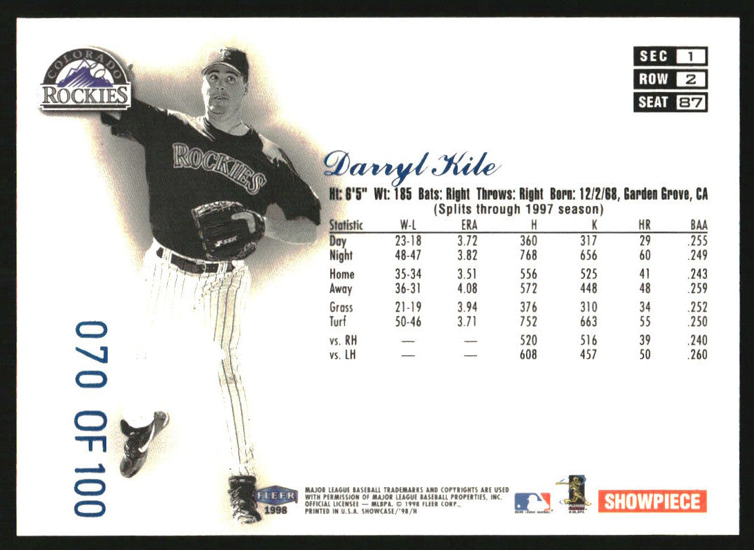 1998 Fleer Flair Showcase Legacy Collection Row 2 #87 Darryl Kile /100