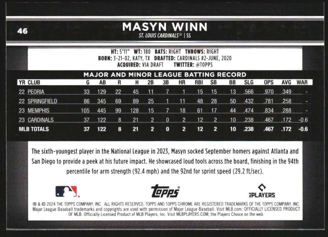 2024 Topps Chrome Black #46b Masyn Winn RC